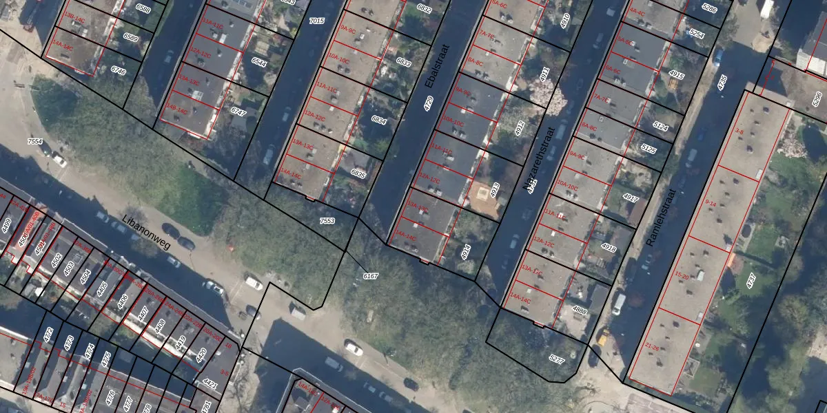 Het perceel waarop Ebalstraat 13-B staat heeft een oppervlakte van 350 m². Dit is een groot perceel. De perceeloppervlakte wordt geregistreerd door het Kadaster. Gedetailleerde informatie over de maten van dit perceel kunt u vinden in het rapport Kadastrale kaart met maatvoering van Ebalstraat 13-B.