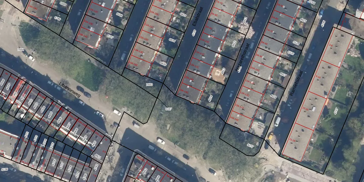 Ebalstraat 14-B is gelegen op kadastraal perceel KLG00G4914. Deze kadastrale aanduiding is uniek en wordt gebruikt door het Kadaster om eigendomsrechten en andere zakelijke rechten vast te leggen. Het perceel maakt onderdeel uit van de kadastrale gemeente Kralingen.