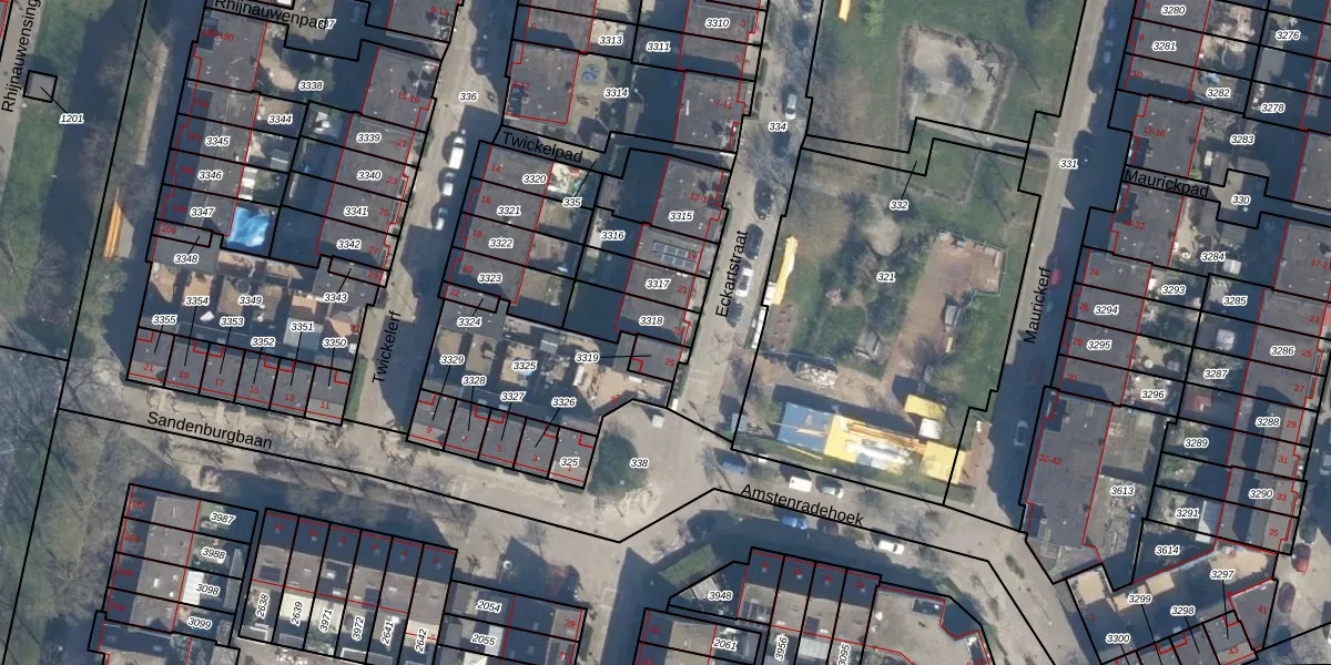 Gebruik de zoekbalk of klik op een perceel voor informatie over de adressen binnen dit perceel.