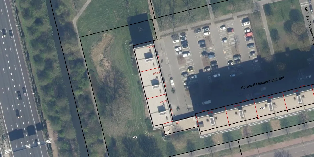 Het perceel waarop Edmond Hellenraadstraat 123 staat heeft een oppervlakte van 2221 m². Dit is een zeer groot perceel. De perceeloppervlakte wordt geregistreerd door het Kadaster. Gedetailleerde informatie over de maten van dit perceel kunt u vinden in het rapport Kadastrale kaart met maatvoering van Edmond Hellenraadstraat 123.