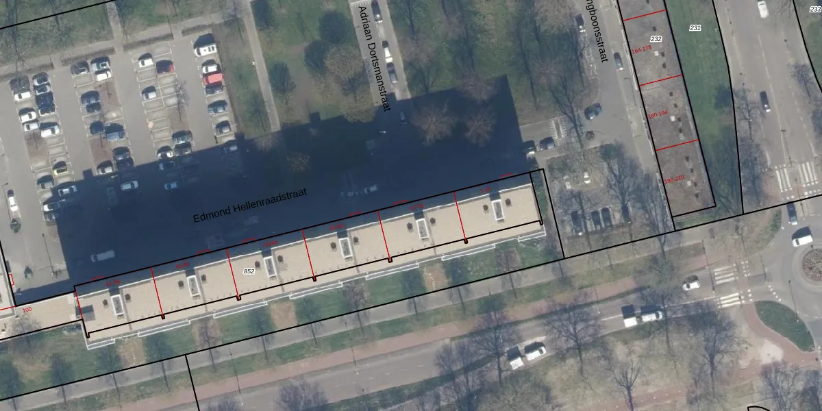 Het perceel waarop Edmond Hellenraadstraat 21 staat heeft een oppervlakte van 2221 m². Dit is een zeer groot perceel. De perceeloppervlakte wordt geregistreerd door het Kadaster. Gedetailleerde informatie over de maten van dit perceel kunt u vinden in het rapport Kadastrale kaart met maatvoering van Edmond Hellenraadstraat 21.