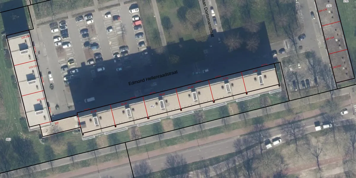 Het perceel waarop Edmond Hellenraadstraat 48 staat heeft een oppervlakte van 2221 m². Dit is een zeer groot perceel. De perceeloppervlakte wordt geregistreerd door het Kadaster. Gedetailleerde informatie over de maten van dit perceel kunt u vinden in het rapport Kadastrale kaart met maatvoering van Edmond Hellenraadstraat 48.