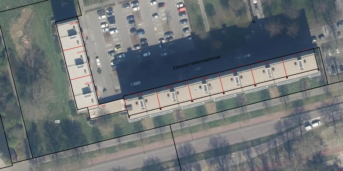 Het perceel waarop Edmond Hellenraadstraat 78 staat heeft een oppervlakte van 2221 m². Dit is een zeer groot perceel. De perceeloppervlakte wordt geregistreerd door het Kadaster. Gedetailleerde informatie over de maten van dit perceel kunt u vinden in het rapport Kadastrale kaart met maatvoering van Edmond Hellenraadstraat 78.