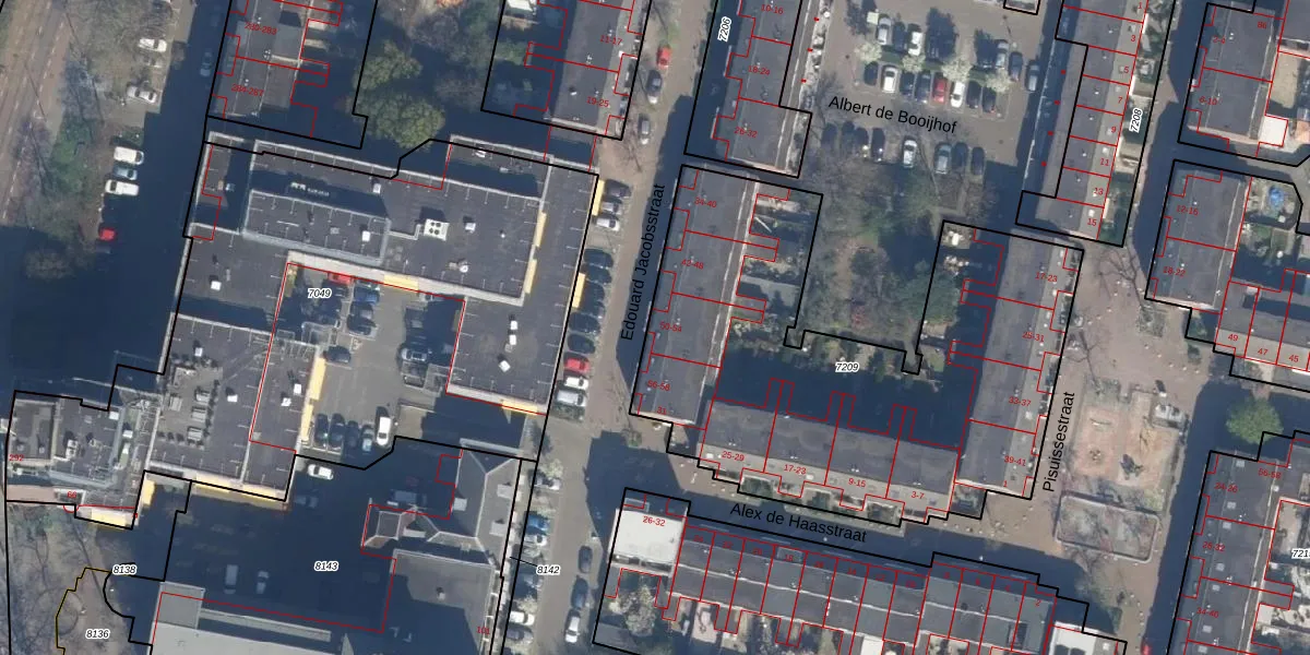 Edouard Jacobsstraat 54 is gelegen op kadastraal perceel RTD07R7209. Deze kadastrale aanduiding is uniek en wordt gebruikt door het Kadaster om eigendomsrechten en andere zakelijke rechten vast te leggen. Het perceel maakt onderdeel uit van de kadastrale gemeente Rotterdam.