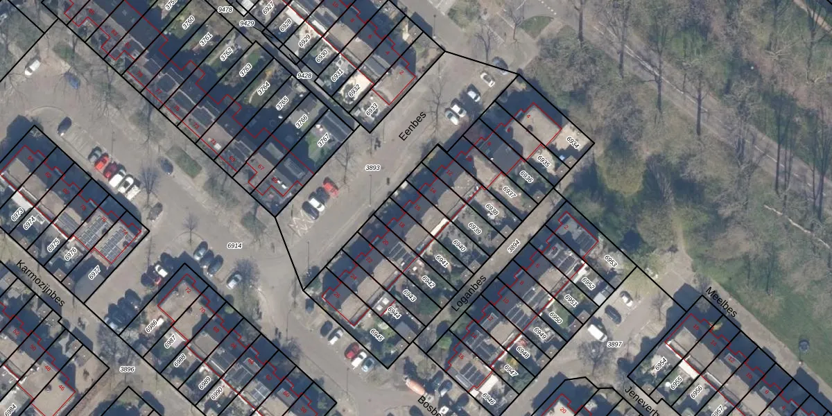 Het perceel waarop Eenbes 16 staat heeft een oppervlakte van 157 m². Dit is een middelgroot perceel. De perceeloppervlakte wordt geregistreerd door het Kadaster. Gedetailleerde informatie over de maten van dit perceel kunt u vinden in het rapport Kadastrale kaart met maatvoering van Eenbes 16.