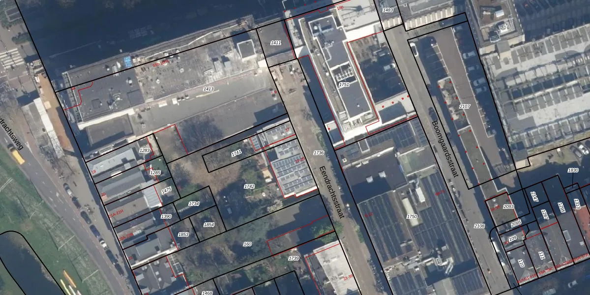 Het perceel waarop Eendrachtsstraat 19 staat heeft een oppervlakte van 937 m². Dit is een groot perceel. De perceeloppervlakte wordt geregistreerd door het Kadaster. Gedetailleerde informatie over de maten van dit perceel kunt u vinden in het rapport Kadastrale kaart met maatvoering van Eendrachtsstraat 19.