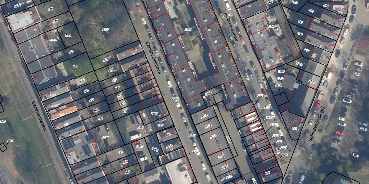 Het perceel waarop Eendrachtsstraat 288 staat heeft een oppervlakte van 2767 m². Dit is een zeer groot perceel. De perceeloppervlakte wordt geregistreerd door het Kadaster. Gedetailleerde informatie over de maten van dit perceel kunt u vinden in het rapport Kadastrale kaart met maatvoering van Eendrachtsstraat 288.