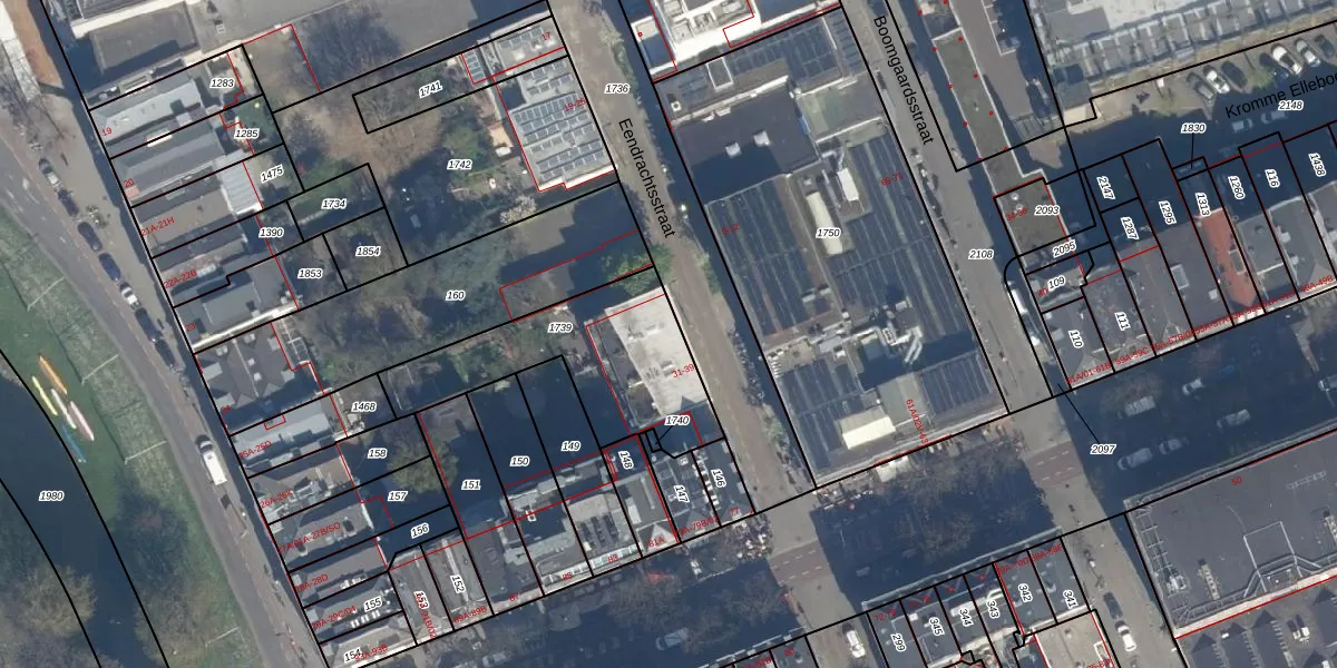 Het perceel waarop Eendrachtsstraat 33 staat heeft een oppervlakte van 641 m². Dit is een groot perceel. De perceeloppervlakte wordt geregistreerd door het Kadaster. Gedetailleerde informatie over de maten van dit perceel kunt u vinden in het rapport Kadastrale kaart met maatvoering van Eendrachtsstraat 33.