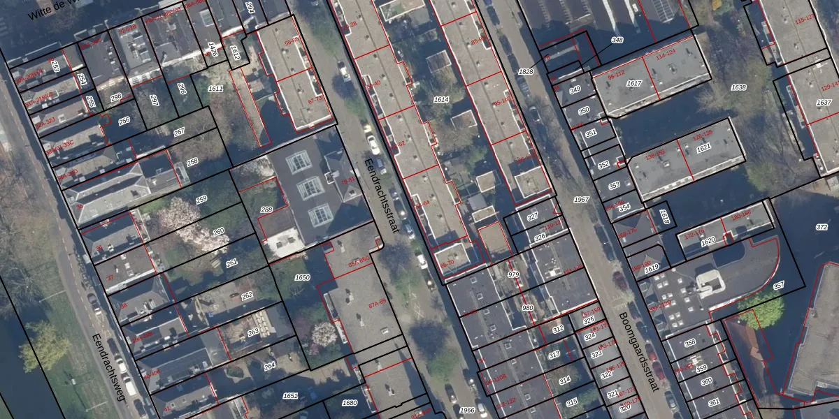 Eendrachtsstraat 64 is gelegen op kadastraal perceel RTD04AG1614. Deze kadastrale aanduiding is uniek en wordt gebruikt door het Kadaster om eigendomsrechten en andere zakelijke rechten vast te leggen. Het perceel maakt onderdeel uit van de kadastrale gemeente Rotterdam.
