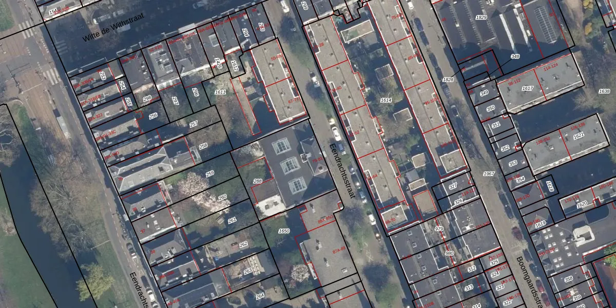 Het perceel waarop Eendrachtsstraat 79 staat heeft een oppervlakte van 673 m². Dit is een groot perceel. De perceeloppervlakte wordt geregistreerd door het Kadaster. Gedetailleerde informatie over de maten van dit perceel kunt u vinden in het rapport Kadastrale kaart met maatvoering van Eendrachtsstraat 79.