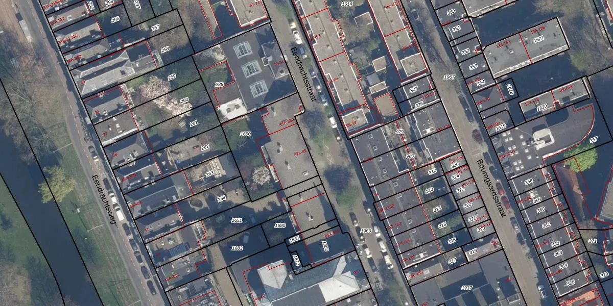 Het perceel waarop Eendrachtsstraat 87-E staat heeft een oppervlakte van 660 m². Dit is een groot perceel. De perceeloppervlakte wordt geregistreerd door het Kadaster. Gedetailleerde informatie over de maten van dit perceel kunt u vinden in het rapport Kadastrale kaart met maatvoering van Eendrachtsstraat 87-E.