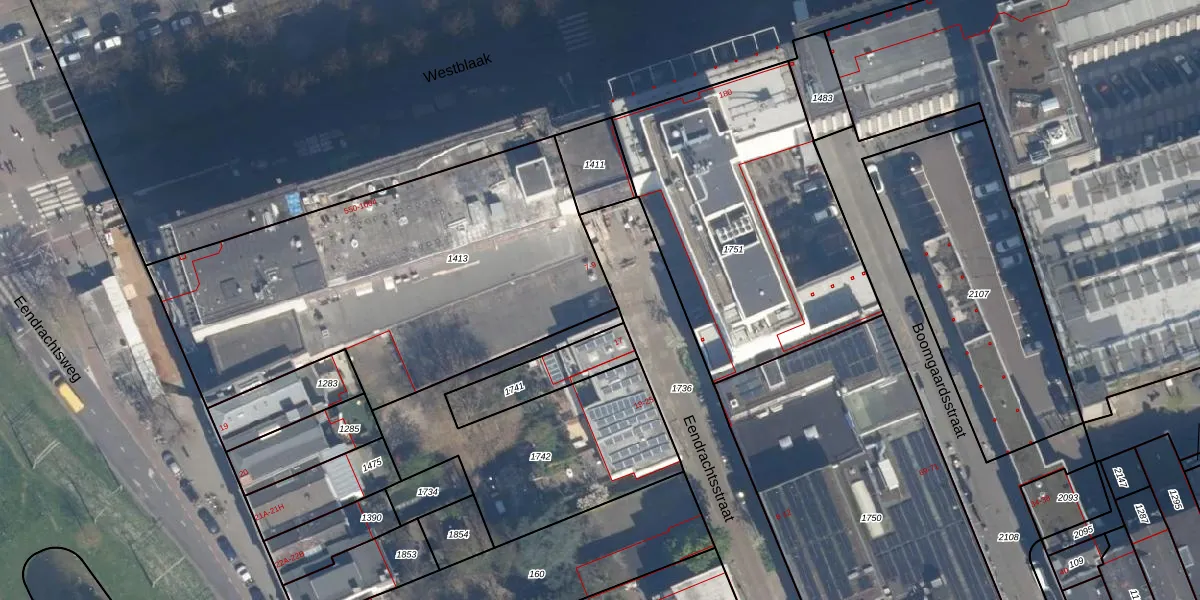 Eendrachtsstraat 9 is gelegen op kadastraal perceel RTD04AG1413. Deze kadastrale aanduiding is uniek en wordt gebruikt door het Kadaster om eigendomsrechten en andere zakelijke rechten vast te leggen. Het perceel maakt onderdeel uit van de kadastrale gemeente Rotterdam.