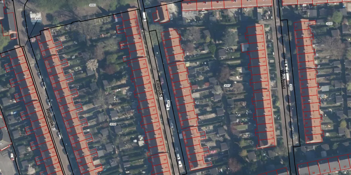 Eiberpad 16 is gelegen op kadastraal perceel CLS00F3097. Deze kadastrale aanduiding is uniek en wordt gebruikt door het Kadaster om eigendomsrechten en andere zakelijke rechten vast te leggen. Het perceel maakt onderdeel uit van de kadastrale gemeente Charlois.