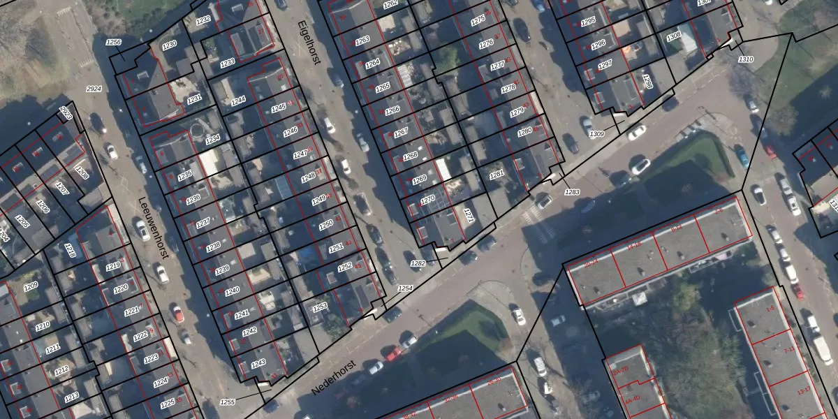 Gebruik de zoekbalk of klik op een perceel voor informatie over de adressen binnen dit perceel.