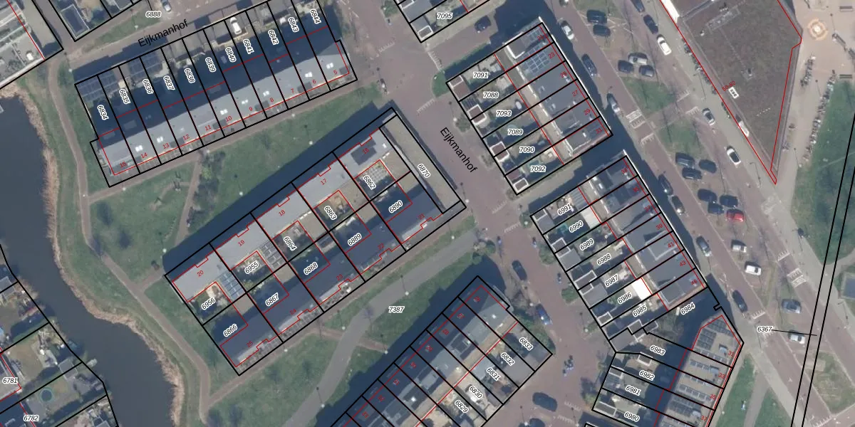 Het perceel waarop Eijkmanhof 21 staat heeft een oppervlakte van 188 m². Dit is een middelgroot perceel. De perceeloppervlakte wordt geregistreerd door het Kadaster. Gedetailleerde informatie over de maten van dit perceel kunt u vinden in het rapport Kadastrale kaart met maatvoering van Eijkmanhof 21.