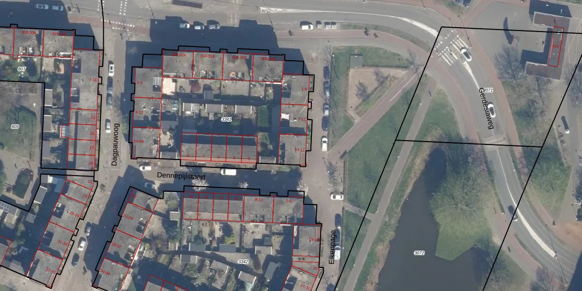 Eikenpage 13 is gelegen op kadastraal perceel KLG00F3341. Deze kadastrale aanduiding is uniek en wordt gebruikt door het Kadaster om eigendomsrechten en andere zakelijke rechten vast te leggen. Het perceel maakt onderdeel uit van de kadastrale gemeente Kralingen.