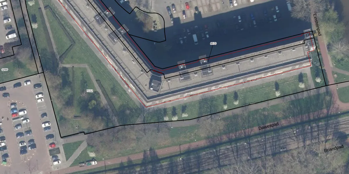 Het perceel waarop Einsteinplaats 1025 staat heeft een oppervlakte van 1,1 ha. Dit is een zeer groot perceel. De perceeloppervlakte wordt geregistreerd door het Kadaster. Gedetailleerde informatie over de maten van dit perceel kunt u vinden in het rapport Kadastrale kaart met maatvoering van Einsteinplaats 1025.
