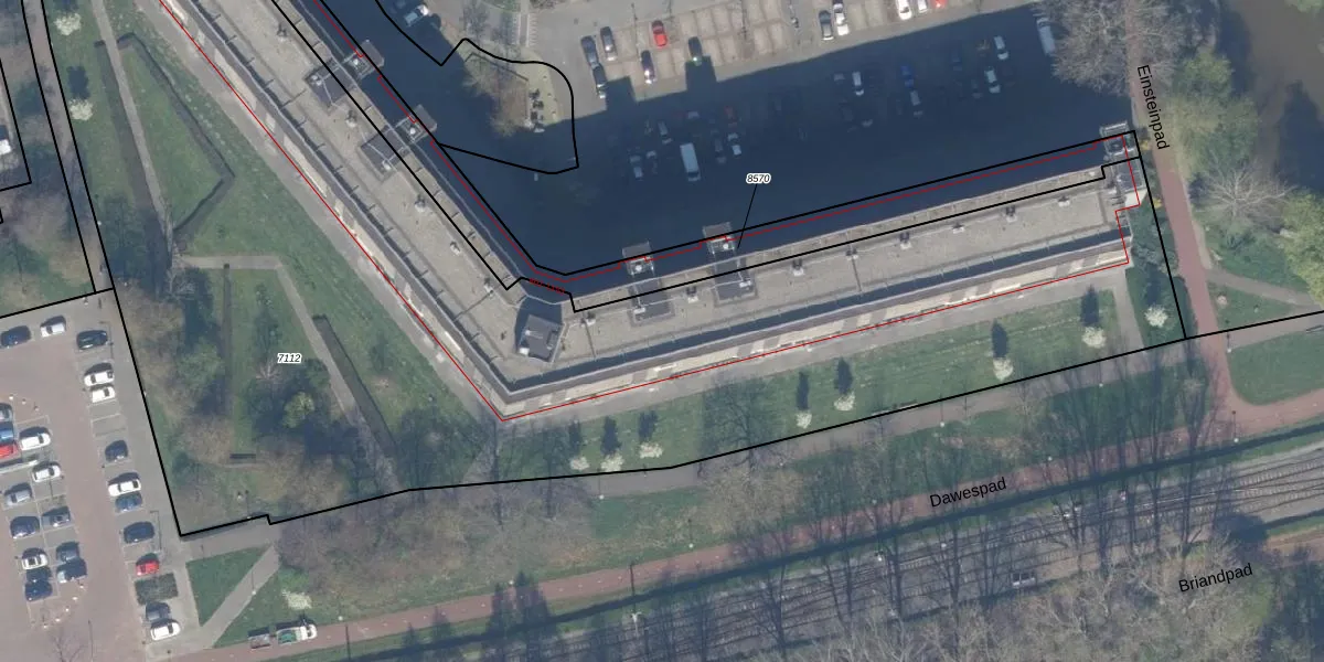 Het perceel waarop Einsteinplaats 1027 staat heeft een oppervlakte van 1,1 ha. Dit is een zeer groot perceel. De perceeloppervlakte wordt geregistreerd door het Kadaster. Gedetailleerde informatie over de maten van dit perceel kunt u vinden in het rapport Kadastrale kaart met maatvoering van Einsteinplaats 1027.