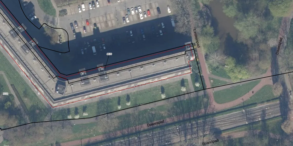 Het adres is gelegen op perceel 7112 in de sectie B en de kadastrale gemeente Hillegersberg. De kadastrale aanduiding is aldus HLG03-B-7112. De oppervlakte van het perceel is 1,1 ha. Dat is groter dan gemiddeld in Hillegersberg, waar de gemiddelde perceeloppervlakte op 875,44 m² ligt. Het grootste perceel in de kadastrale gemeente is 34,1 ha. Het kleinste perceel heeft een oppervlakte van 0 m². Op het perceel liggen in totaal 177 adressen. De huidige grenzen van het perceel zijn digitaal in de Basisregistratie Kadaster (BRK) geregistreerd op 13-03-2008.
