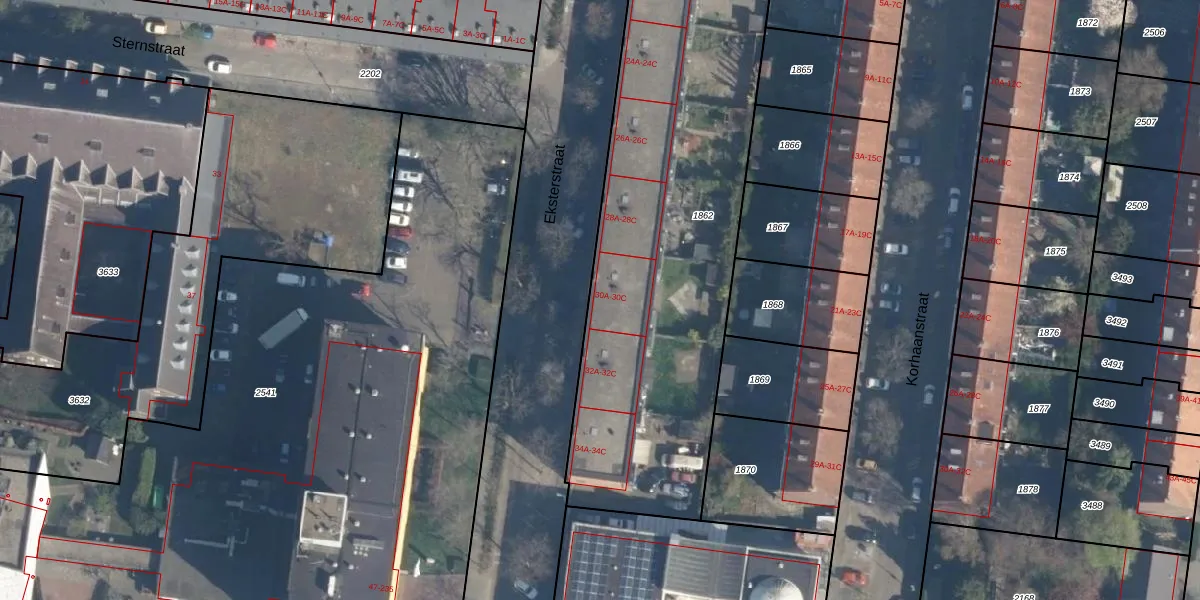 Het perceel waarop Eksterstraat 30-A staat heeft een oppervlakte van 2517 m². Dit is een zeer groot perceel. De perceeloppervlakte wordt geregistreerd door het Kadaster. Gedetailleerde informatie over de maten van dit perceel kunt u vinden in het rapport Kadastrale kaart met maatvoering van Eksterstraat 30-A.