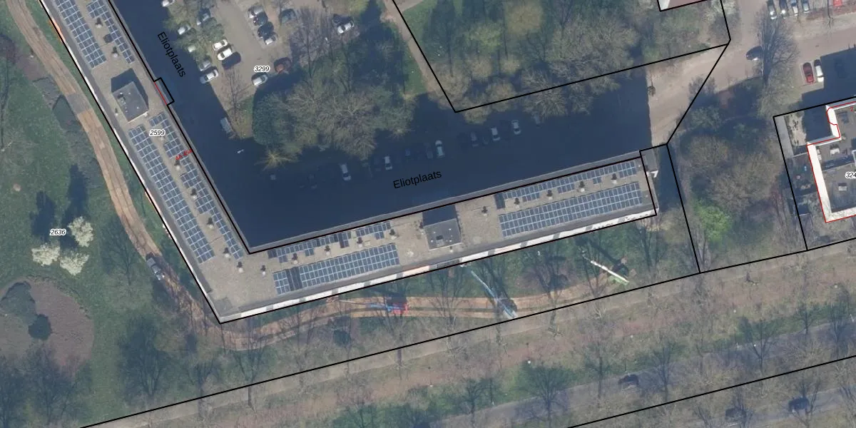 Het perceel waarop Eliotplaats 156 staat heeft een oppervlakte van 2710 m². Dit is een zeer groot perceel. De perceeloppervlakte wordt geregistreerd door het Kadaster. Gedetailleerde informatie over de maten van dit perceel kunt u vinden in het rapport Kadastrale kaart met maatvoering van Eliotplaats 156.