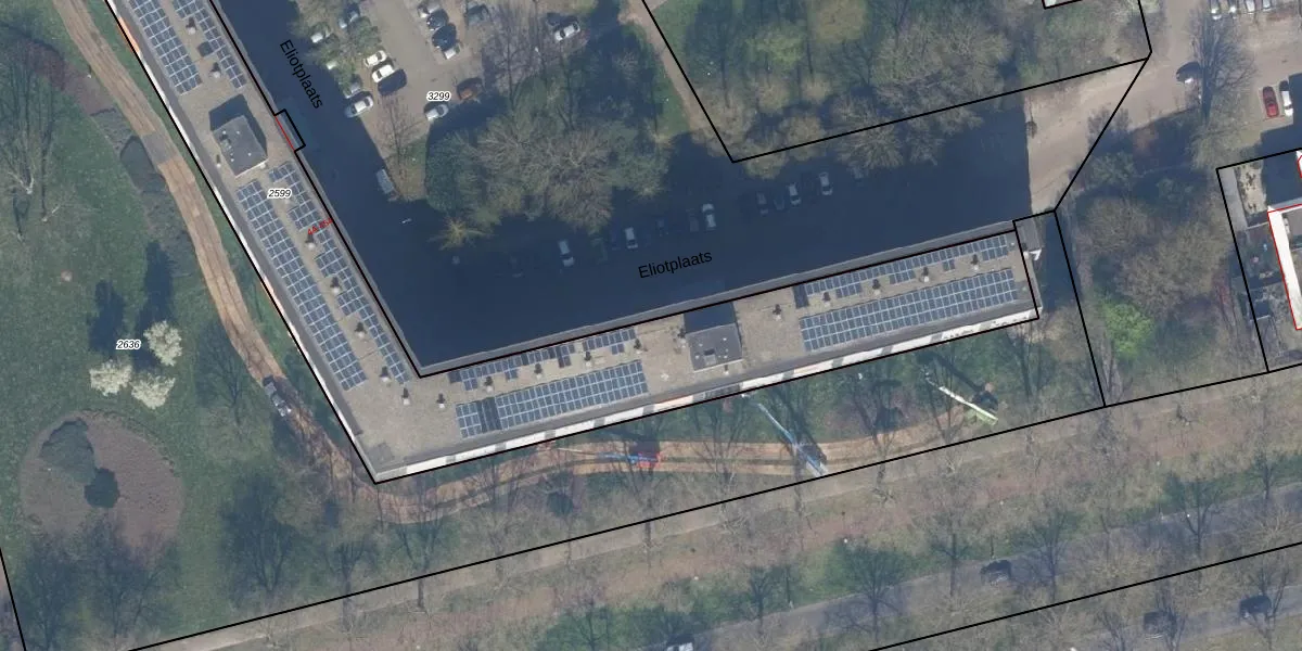 Het perceel waarop Eliotplaats 226 staat heeft een oppervlakte van 2710 m². Dit is een zeer groot perceel. De perceeloppervlakte wordt geregistreerd door het Kadaster. Gedetailleerde informatie over de maten van dit perceel kunt u vinden in het rapport Kadastrale kaart met maatvoering van Eliotplaats 226.