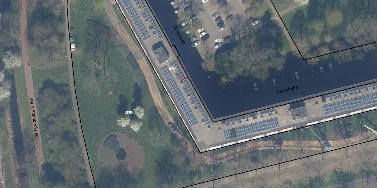 Het perceel waarop Eliotplaats 268 staat heeft een oppervlakte van 2710 m². Dit is een zeer groot perceel. De perceeloppervlakte wordt geregistreerd door het Kadaster. Gedetailleerde informatie over de maten van dit perceel kunt u vinden in het rapport Kadastrale kaart met maatvoering van Eliotplaats 268.