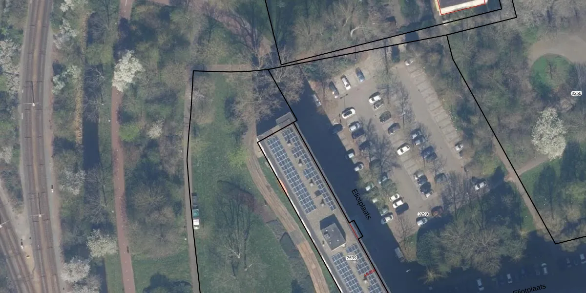 Het perceel waarop Eliotplaats 450 staat heeft een oppervlakte van 2710 m². Dit is een zeer groot perceel. De perceeloppervlakte wordt geregistreerd door het Kadaster. Gedetailleerde informatie over de maten van dit perceel kunt u vinden in het rapport Kadastrale kaart met maatvoering van Eliotplaats 450.