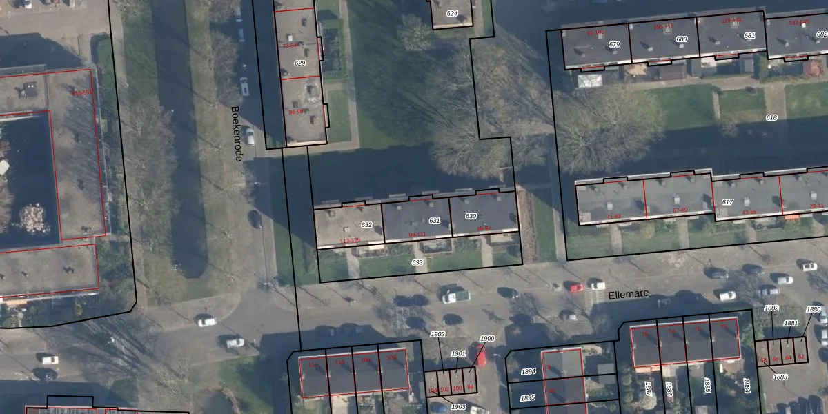 Ellemare 103 is gelegen op kadastraal perceel CLS00K631. Deze kadastrale aanduiding is uniek en wordt gebruikt door het Kadaster om eigendomsrechten en andere zakelijke rechten vast te leggen. Het perceel maakt onderdeel uit van de kadastrale gemeente Charlois.