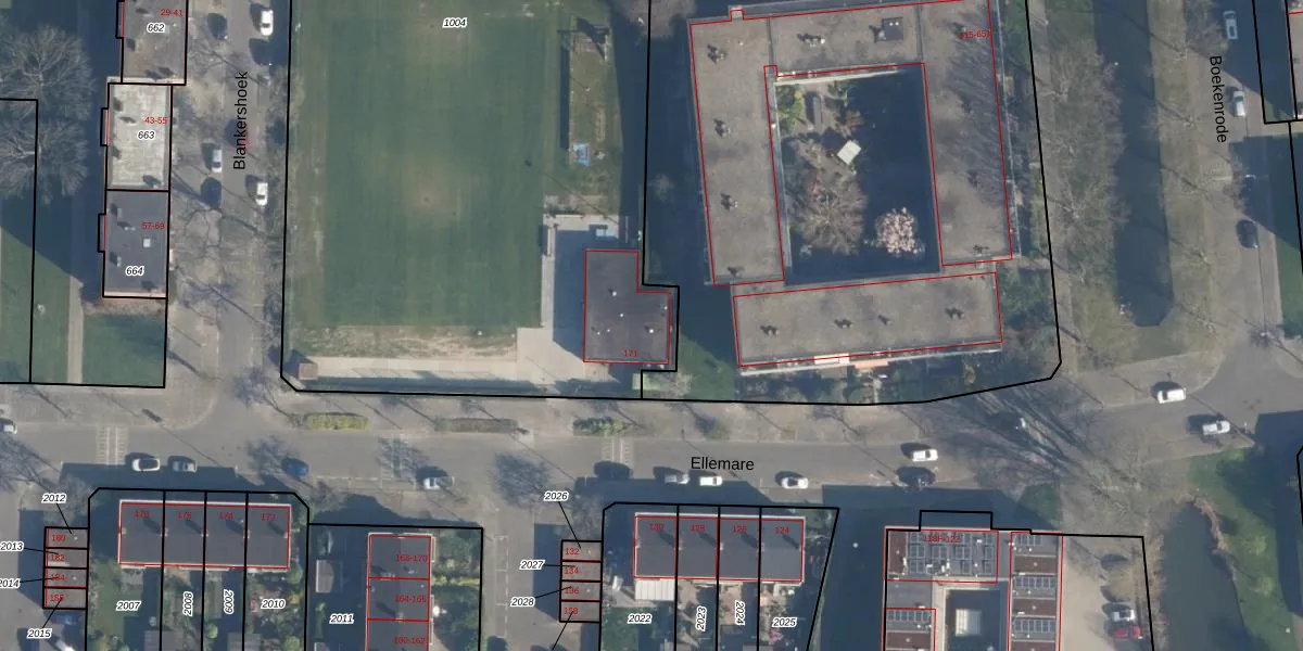 Ellemare 171 is gelegen op kadastraal perceel CLS00K1004. Deze kadastrale aanduiding is uniek en wordt gebruikt door het Kadaster om eigendomsrechten en andere zakelijke rechten vast te leggen. Het perceel maakt onderdeel uit van de kadastrale gemeente Charlois.