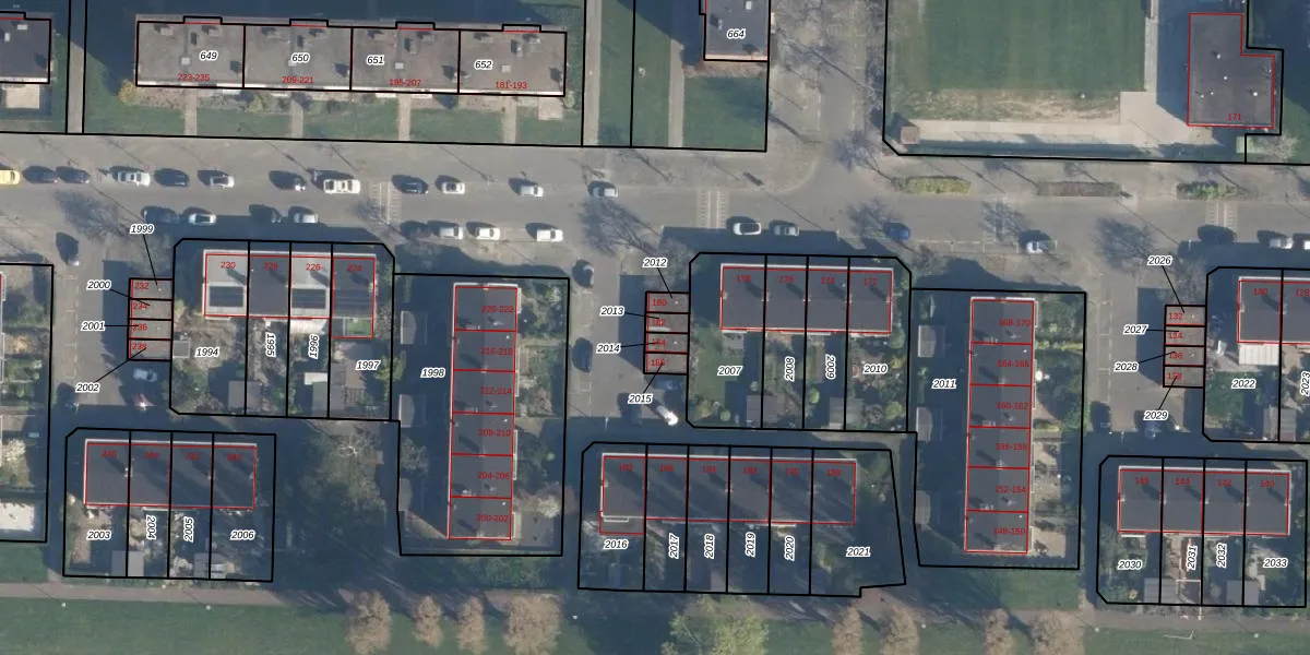 Gebruik de zoekbalk of klik op een perceel voor informatie over de adressen binnen dit perceel.