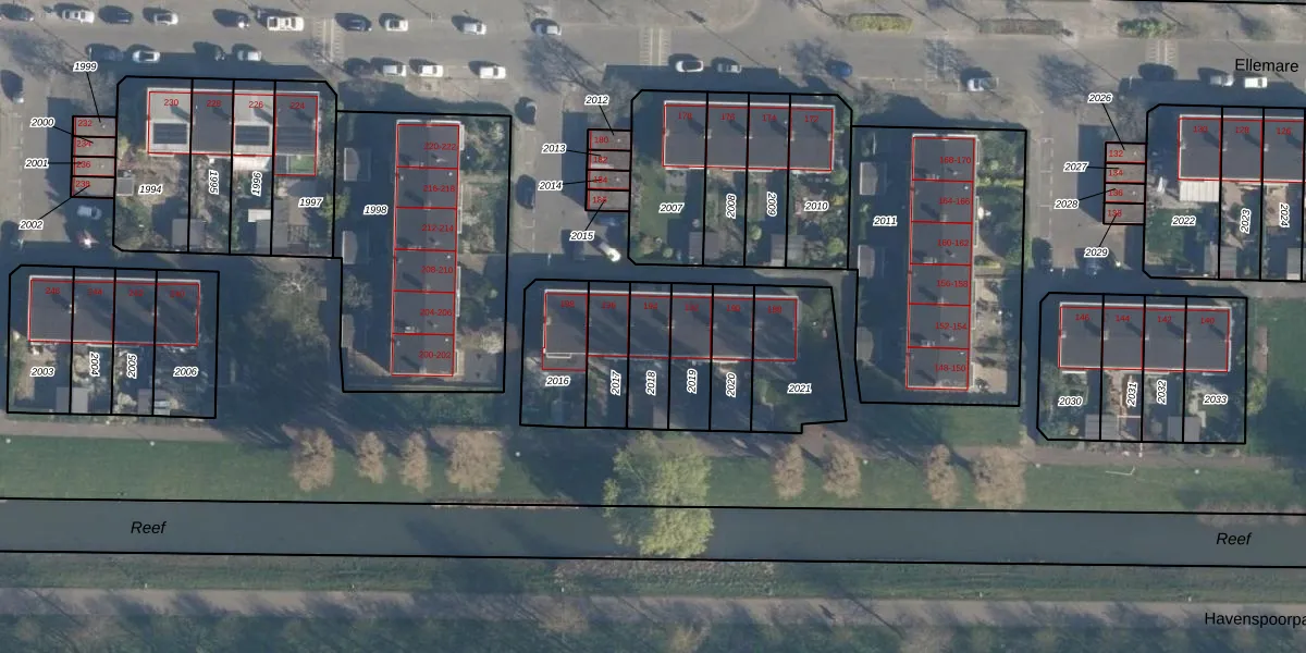 Gebruik de zoekbalk of klik op een perceel voor informatie over de adressen binnen dit perceel.
