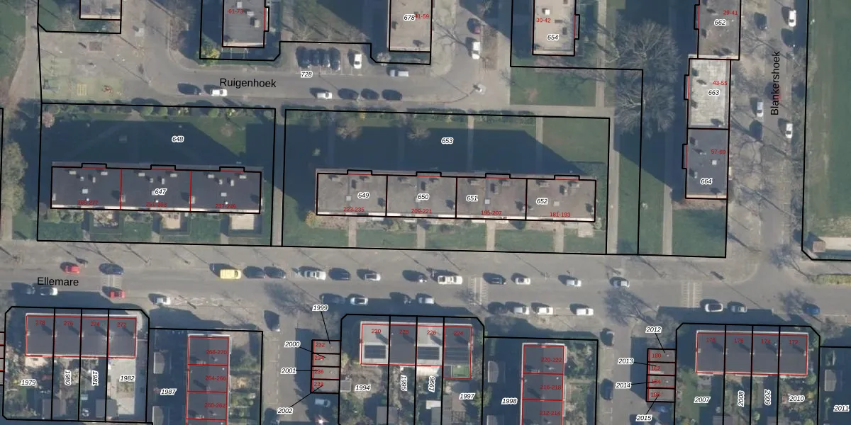 Ellemare 211 is gelegen op kadastraal perceel CLS00K650. Deze kadastrale aanduiding is uniek en wordt gebruikt door het Kadaster om eigendomsrechten en andere zakelijke rechten vast te leggen. Het perceel maakt onderdeel uit van de kadastrale gemeente Charlois.