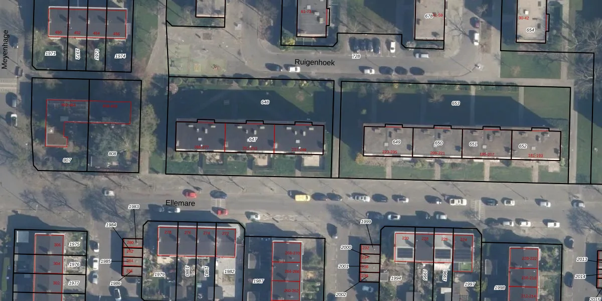 Het perceel waarop Ellemare 237 staat heeft een oppervlakte van 494 m². Dit is een groot perceel. De perceeloppervlakte wordt geregistreerd door het Kadaster. Gedetailleerde informatie over de maten van dit perceel kunt u vinden in het rapport Kadastrale kaart met maatvoering van Ellemare 237.