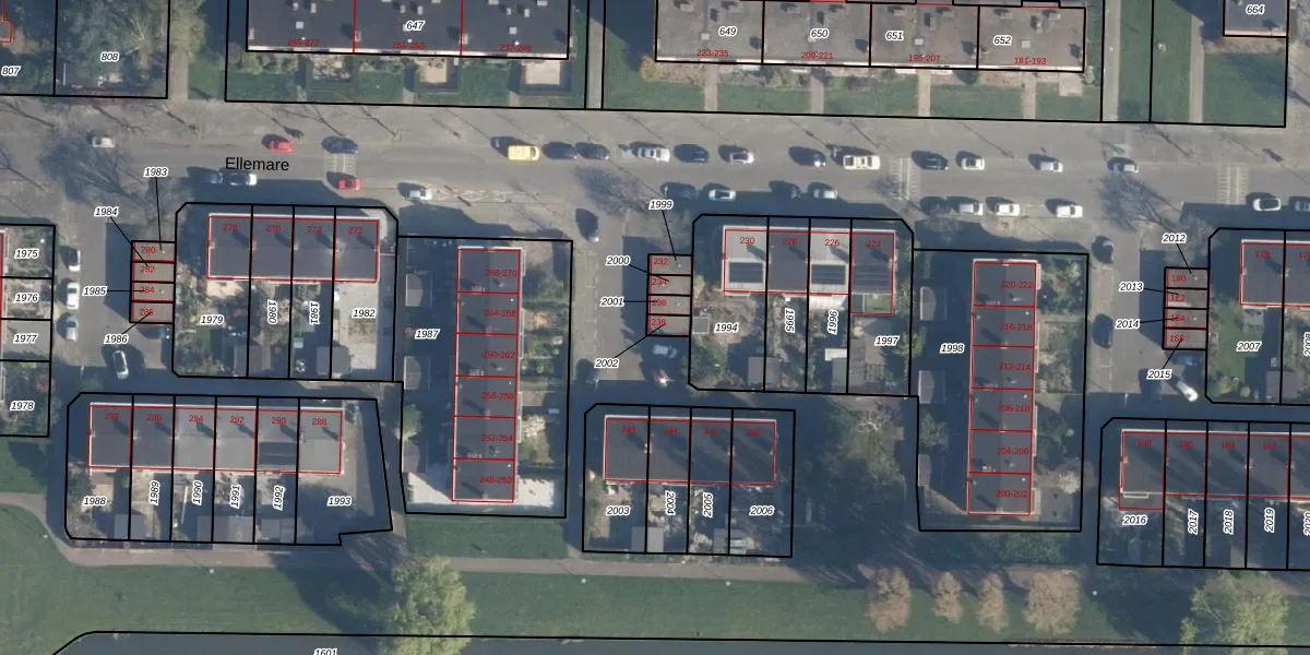 Het perceel waarop Ellemare 238 staat heeft een oppervlakte van 21 m². Dit is een klein perceel. De perceeloppervlakte wordt geregistreerd door het Kadaster. Gedetailleerde informatie over de maten van dit perceel kunt u vinden in het rapport Kadastrale kaart met maatvoering van Ellemare 238.