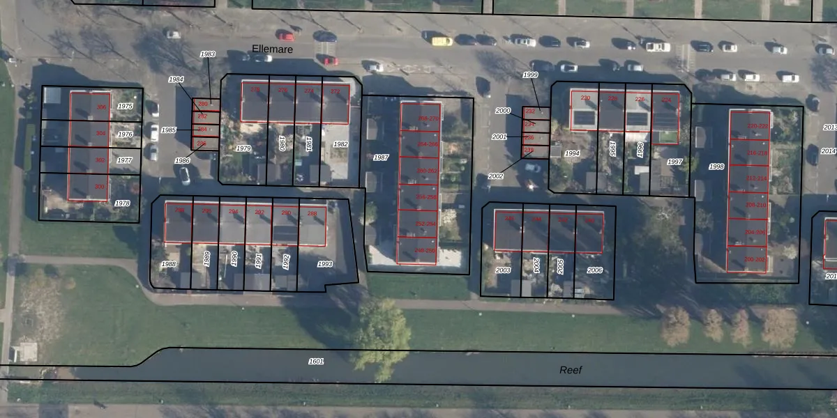Het perceel waarop Ellemare 256 staat heeft een oppervlakte van 1095 m². Dit is een zeer groot perceel. De perceeloppervlakte wordt geregistreerd door het Kadaster. Gedetailleerde informatie over de maten van dit perceel kunt u vinden in het rapport Kadastrale kaart met maatvoering van Ellemare 256.