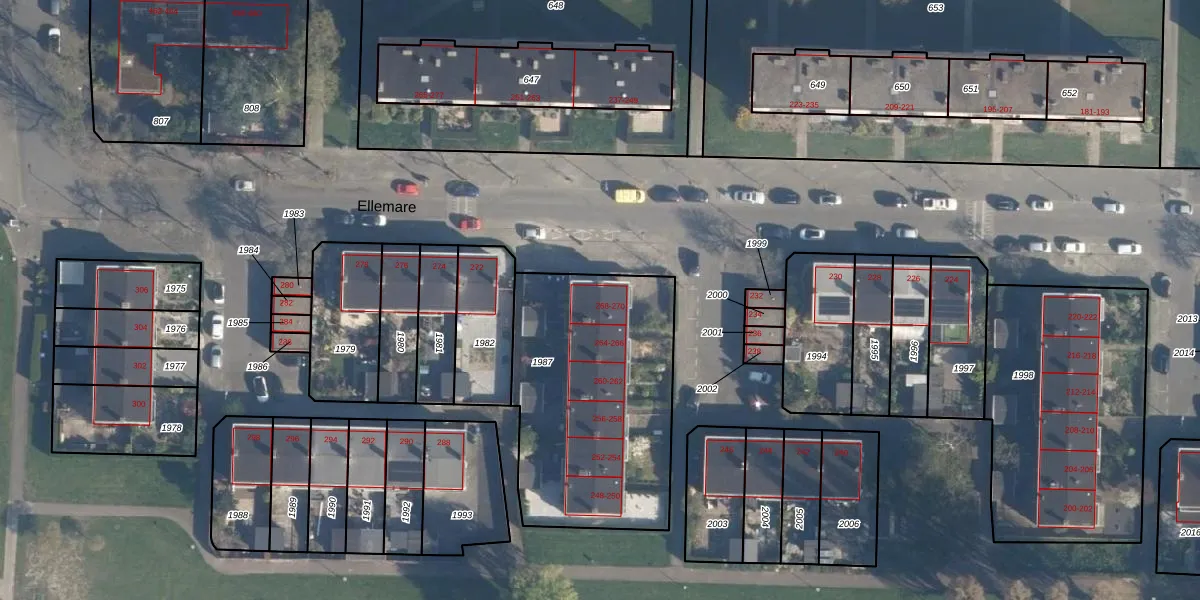 Het perceel waarop Ellemare 270 staat heeft een oppervlakte van 1095 m². Dit is een zeer groot perceel. De perceeloppervlakte wordt geregistreerd door het Kadaster. Gedetailleerde informatie over de maten van dit perceel kunt u vinden in het rapport Kadastrale kaart met maatvoering van Ellemare 270.