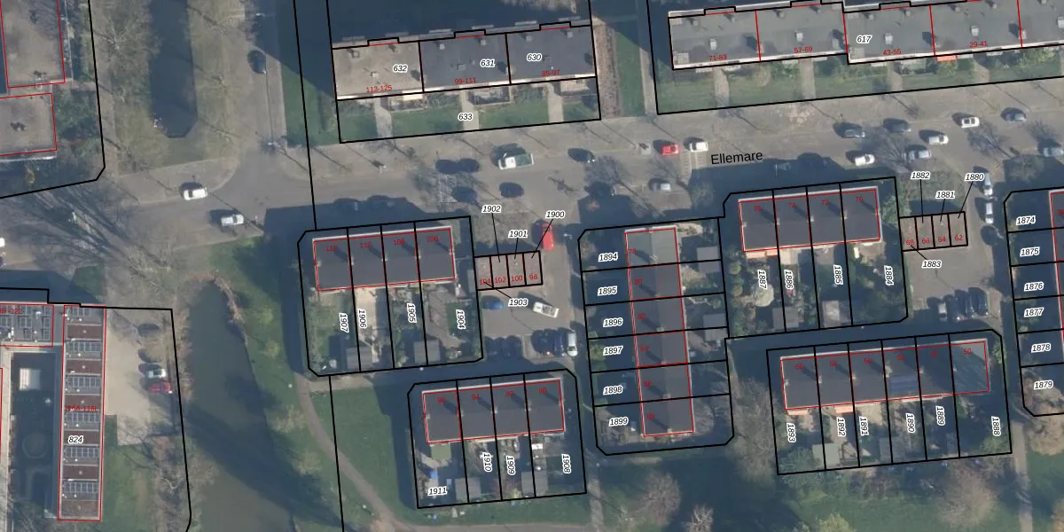 Het perceel waarop Ellemare 98 staat heeft een oppervlakte van 19 m². Dit is een klein perceel. De perceeloppervlakte wordt geregistreerd door het Kadaster. Gedetailleerde informatie over de maten van dit perceel kunt u vinden in het rapport Kadastrale kaart met maatvoering van Ellemare 98.