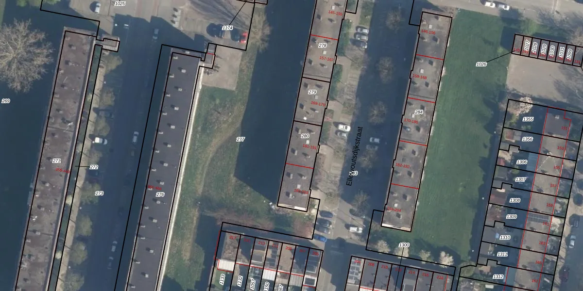 Ellewoutsdijkstraat 185 is gelegen op kadastraal perceel CLS00L280. Deze kadastrale aanduiding is uniek en wordt gebruikt door het Kadaster om eigendomsrechten en andere zakelijke rechten vast te leggen. Het perceel maakt onderdeel uit van de kadastrale gemeente Charlois.