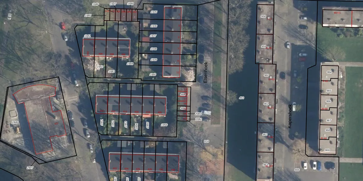 Elsenhoek 13 is gelegen op kadastraal perceel CLS00K988. Deze kadastrale aanduiding is uniek en wordt gebruikt door het Kadaster om eigendomsrechten en andere zakelijke rechten vast te leggen. Het perceel maakt onderdeel uit van de kadastrale gemeente Charlois.