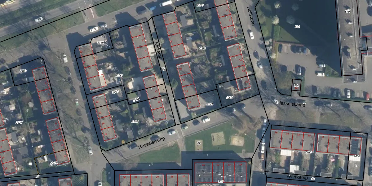 Het perceel waarop Elskamp 14 staat heeft een oppervlakte van 1985 m². Dit is een zeer groot perceel. De perceeloppervlakte wordt geregistreerd door het Kadaster. Gedetailleerde informatie over de maten van dit perceel kunt u vinden in het rapport Kadastrale kaart met maatvoering van Elskamp 14.