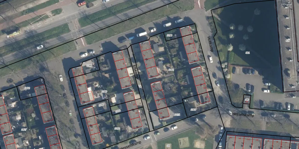 Het perceel waarop Elskamp 8 staat heeft een oppervlakte van 1985 m². Dit is een zeer groot perceel. De perceeloppervlakte wordt geregistreerd door het Kadaster. Gedetailleerde informatie over de maten van dit perceel kunt u vinden in het rapport Kadastrale kaart met maatvoering van Elskamp 8.