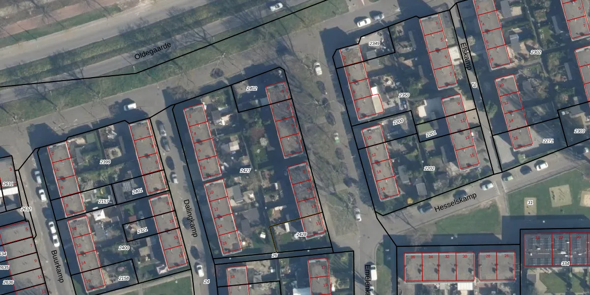 Het perceel waarop Emelenkamp 7 staat heeft een oppervlakte van 1952 m². Dit is een zeer groot perceel. De perceeloppervlakte wordt geregistreerd door het Kadaster. Gedetailleerde informatie over de maten van dit perceel kunt u vinden in het rapport Kadastrale kaart met maatvoering van Emelenkamp 7.