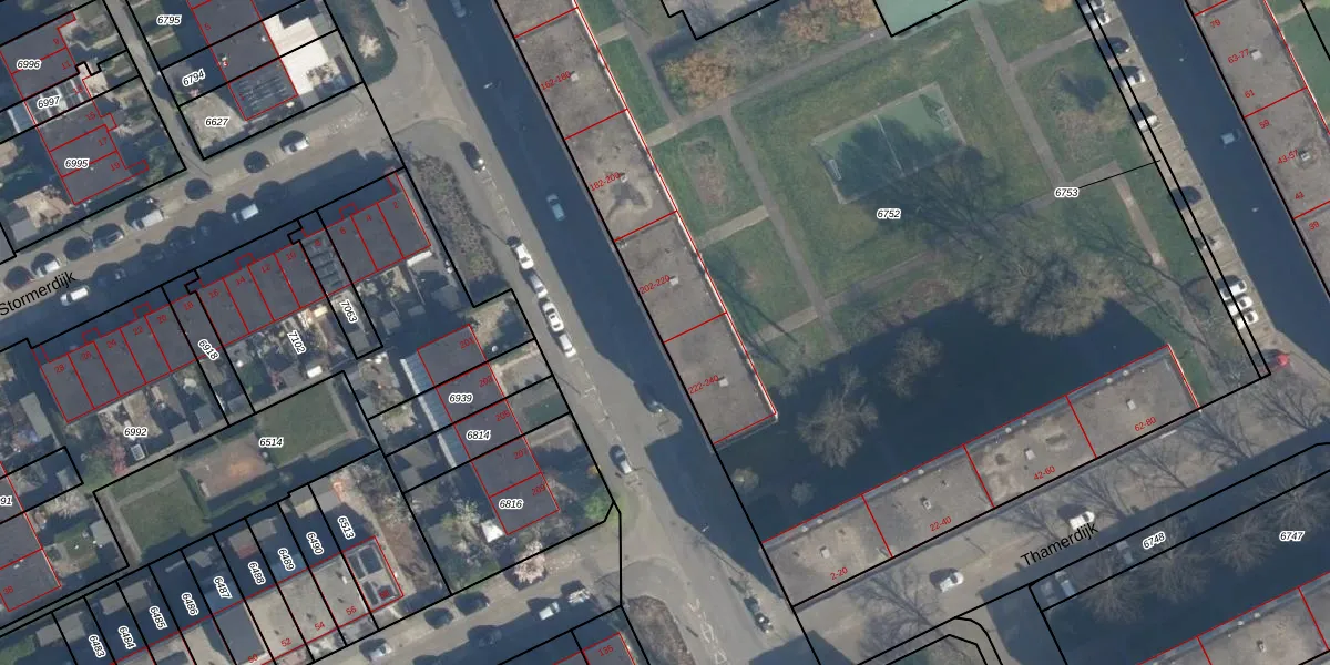 Het adres is gelegen op perceel 6752 in de sectie B en de kadastrale gemeente IJsselmonde. De kadastrale aanduiding is aldus ISM01-B-6752. De oppervlakte van het perceel is 7525 m². Dat is groter dan gemiddeld in IJsselmonde, waar de gemiddelde perceeloppervlakte op 872,38 m² ligt. De grootste perceeloppervlakte in de kadastrale gemeente is 46,2 ha. De kleinste oppervlakte bedraagt 0 m². Er zijn 100 adressen aanwezig op het perceel. In de Basisregistratie Kadaster (BRK) werden de grenzen van het perceel geregistreerd op 03-04-2014.