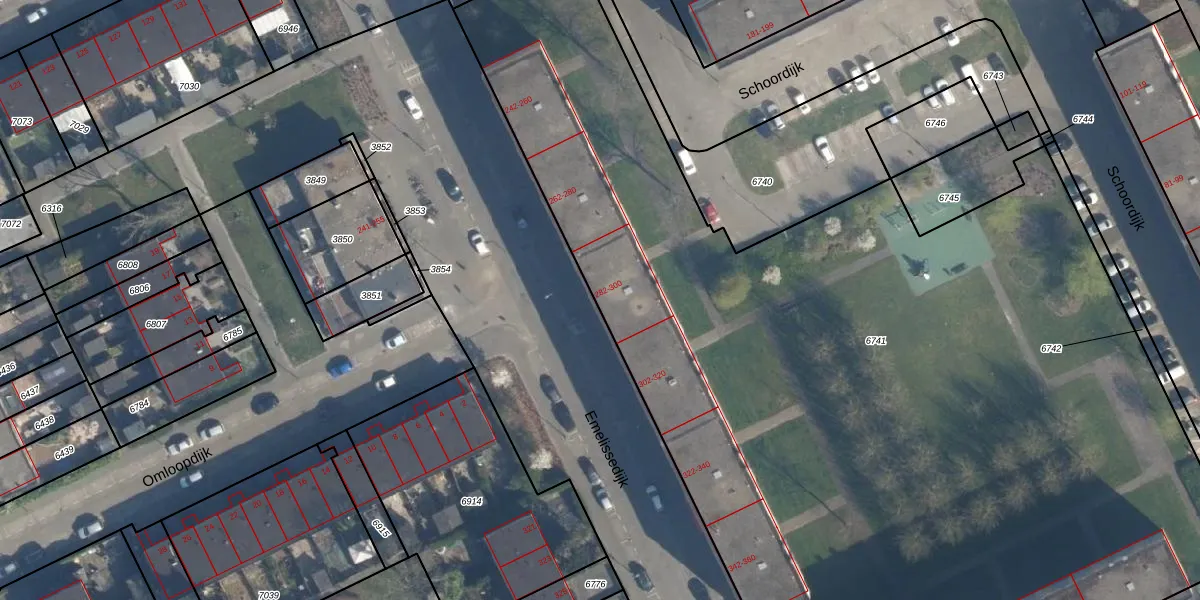 Emelissedijk 296 is gelegen op kadastraal perceel ISM01B6741. Deze kadastrale aanduiding is uniek en wordt gebruikt door het Kadaster om eigendomsrechten en andere zakelijke rechten vast te leggen. Het perceel maakt onderdeel uit van de kadastrale gemeente IJsselmonde.