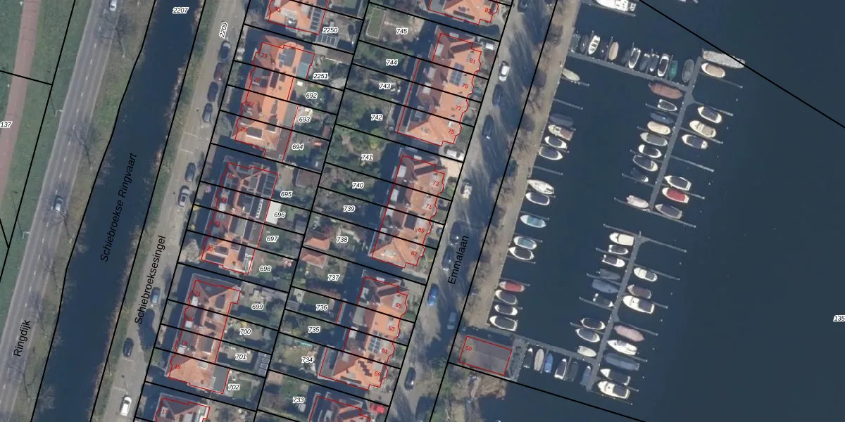Het adres is gelegen op perceel 740 in de sectie G en de kadastrale gemeente Hillegersberg. De kadastrale aanduiding is aldus HLG03-G-740. Het perceel is 182 m² groot. Dat is kleiner dan de gemiddelde perceeloppervlakte in Hillegersberg, dat op 875,44 m² ligt. Het kleinste perceel in de kadastrale gemeente is 0 m² groot. De grootste perceeloppervlakte is 34,1 ha. Er zijn geen andere adressen aanwezig op het perceel. De huidige grenzen van het perceel zijn digitaal in de Basisregistratie Kadaster (BRK) geregistreerd op 06-06-2003.