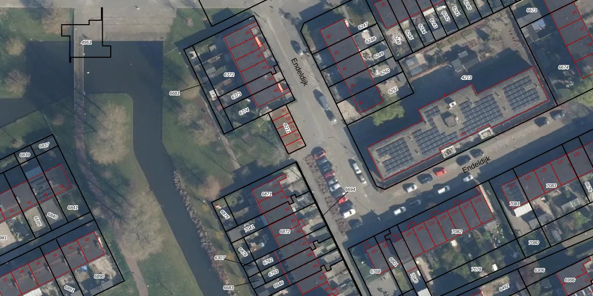 Endeldijk 75 is gelegen op kadastraal perceel ISM01B4211. Deze kadastrale aanduiding is uniek en wordt gebruikt door het Kadaster om eigendomsrechten en andere zakelijke rechten vast te leggen. Het perceel maakt onderdeel uit van de kadastrale gemeente IJsselmonde.