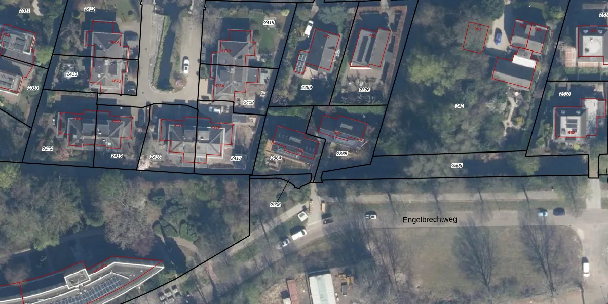 Engelbrechtweg 478 is gelegen op kadastraal perceel KLG00L2864. Deze kadastrale aanduiding is uniek en wordt gebruikt door het Kadaster om eigendomsrechten en andere zakelijke rechten vast te leggen. Het perceel maakt onderdeel uit van de kadastrale gemeente Kralingen.