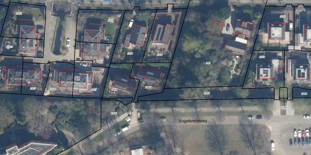 Engelbrechtweg 480 is gelegen op kadastraal perceel KLG00L2865. Deze kadastrale aanduiding is uniek en wordt gebruikt door het Kadaster om eigendomsrechten en andere zakelijke rechten vast te leggen. Het perceel maakt onderdeel uit van de kadastrale gemeente Kralingen.