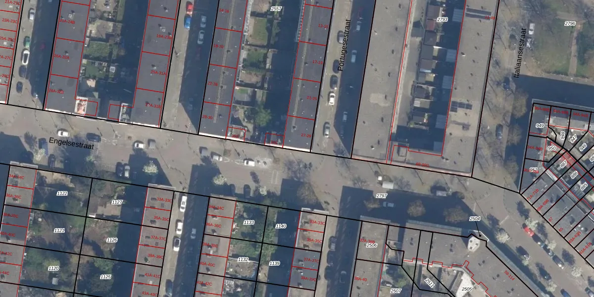 Engelsestraat 101 is gelegen op kadastraal perceel RTD10AA2557. Deze kadastrale aanduiding is uniek en wordt gebruikt door het Kadaster om eigendomsrechten en andere zakelijke rechten vast te leggen. Het perceel maakt onderdeel uit van de kadastrale gemeente Rotterdam.